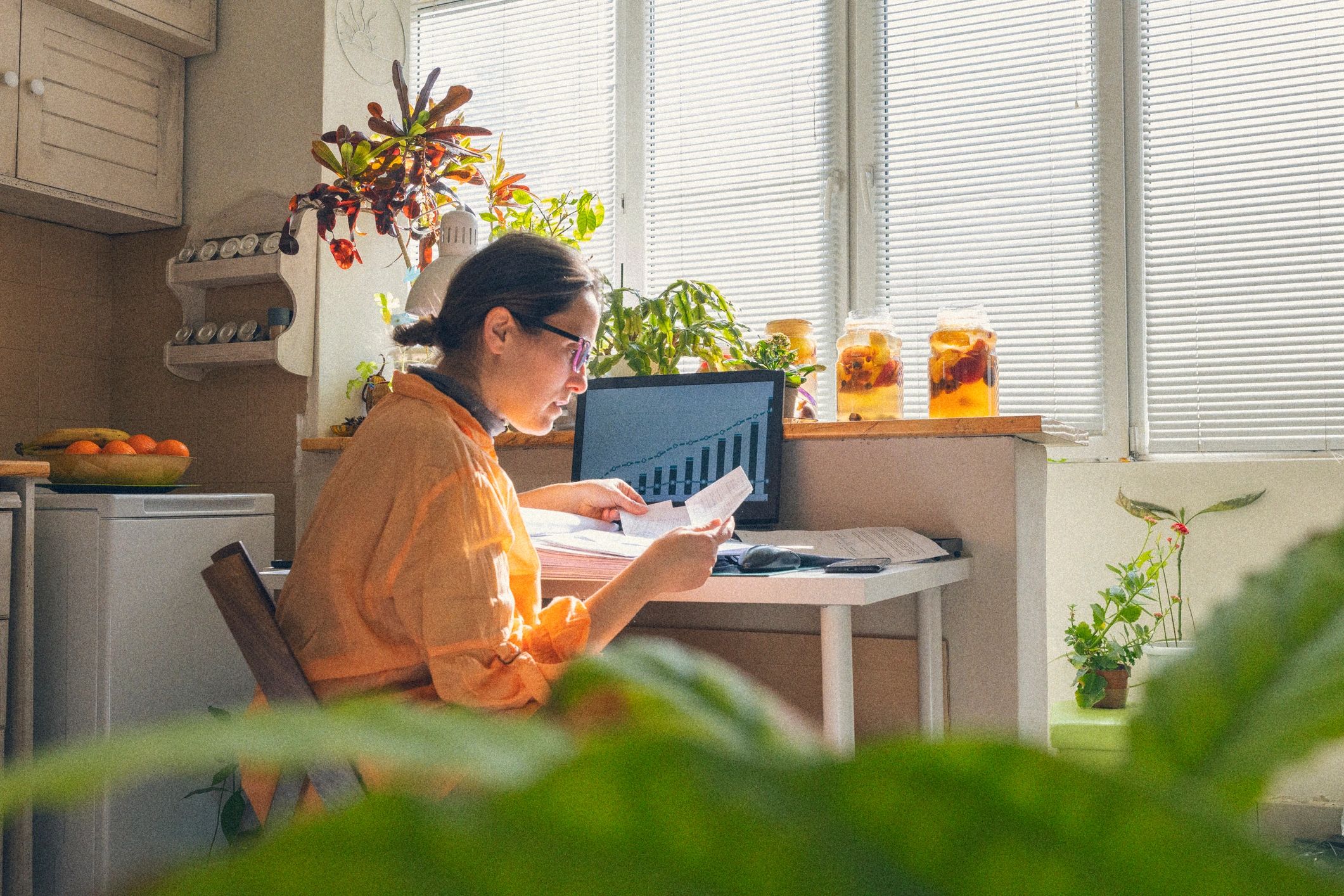 Professional reviewing documents