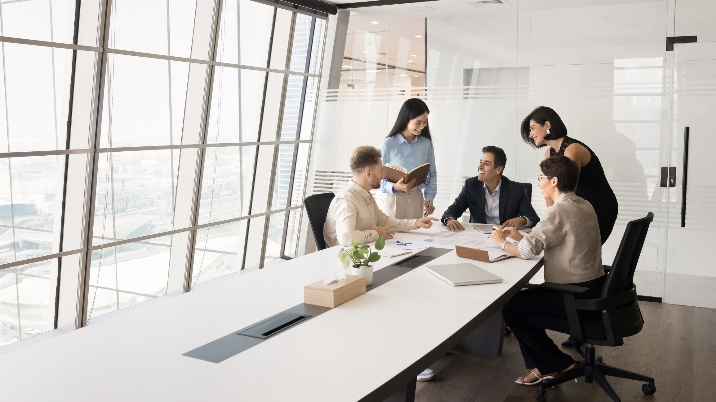 Business professionals working together in a modern office